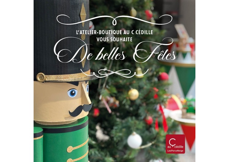 l'atelier-boutique au c cédille vous souhaite de belles fêtes et se réjouit de vous retrouver en 2026